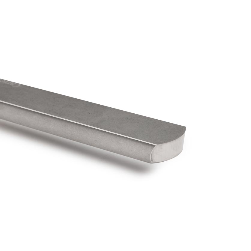 A sturdy bowl scraper produces fine shavings and is optimal for leaving a smooth finish and removing cutter marks. Projects ranging from bowls and platters to boxes and goblets can benefit from a round nose scraper's fine finish. Paired with a versatile, 180° grind profile.